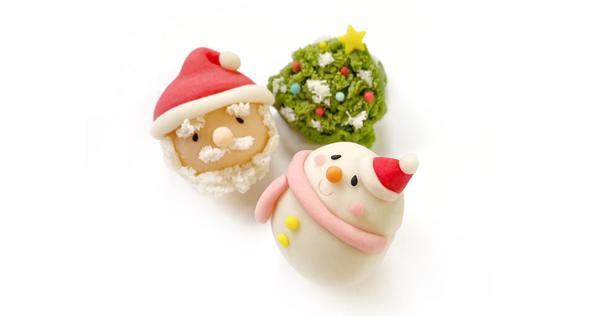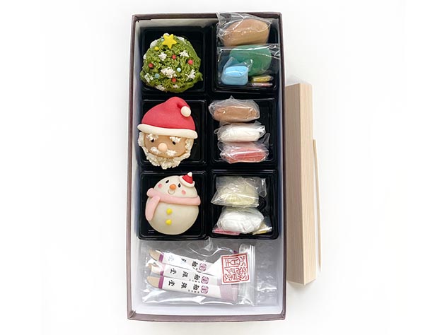 今年のおうちクリスマスにぴったりな、「雪だるま、サンタクロース、ツリー」をご用意しました。セットにはお菓子製作に使用する、三角ベラ、竹串が揃っているので、これだけで本格的な上生菓子体験ができます。
